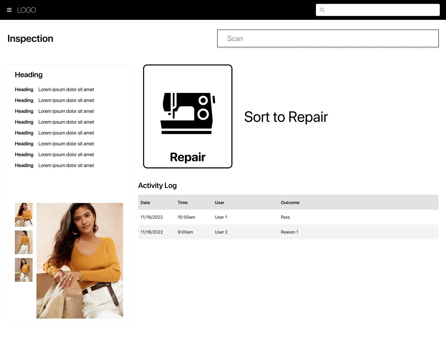That meant asking a lot of granular questions upfront: How does a team member hold a garment scanner? What size are the screens? How do users physically move garments between stations? We used the answers to define our user flow and make sure the tool made sense in a physical space, not just on a screen.