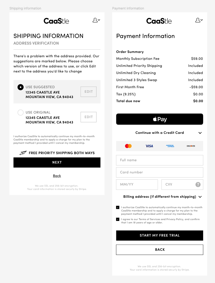 The "exactly" qualifier pointed out challenges that we had previously seen in our onboarding flows: users were going through each screen with more questions instead of answers. Even though the payment screen had a breakdown of what they were getting every month, it didn't explain how their membership actually worked.