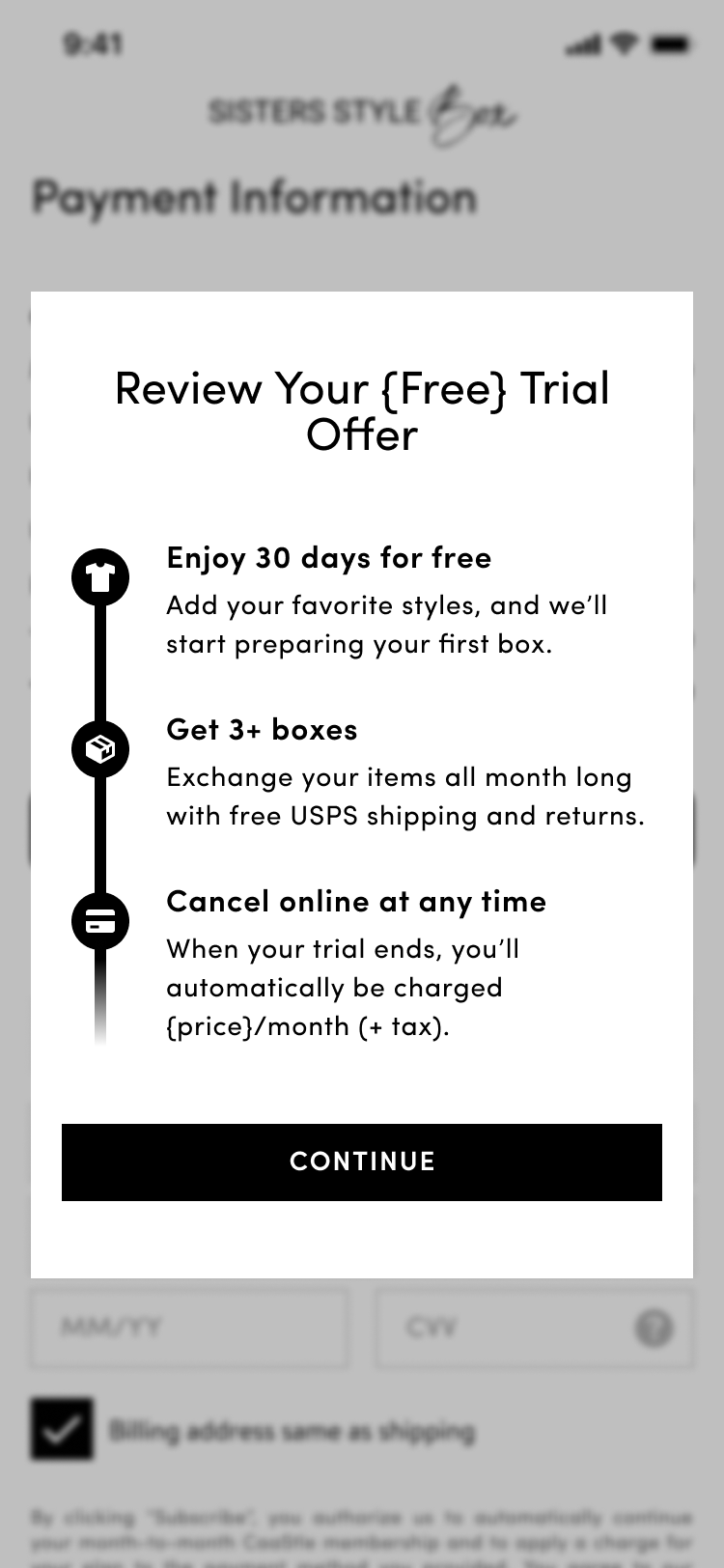 While we didn't overhaul the onboarding flow, we were able to both add clear messaging of their trial and their consent to get automatically charged at the end of their trial.